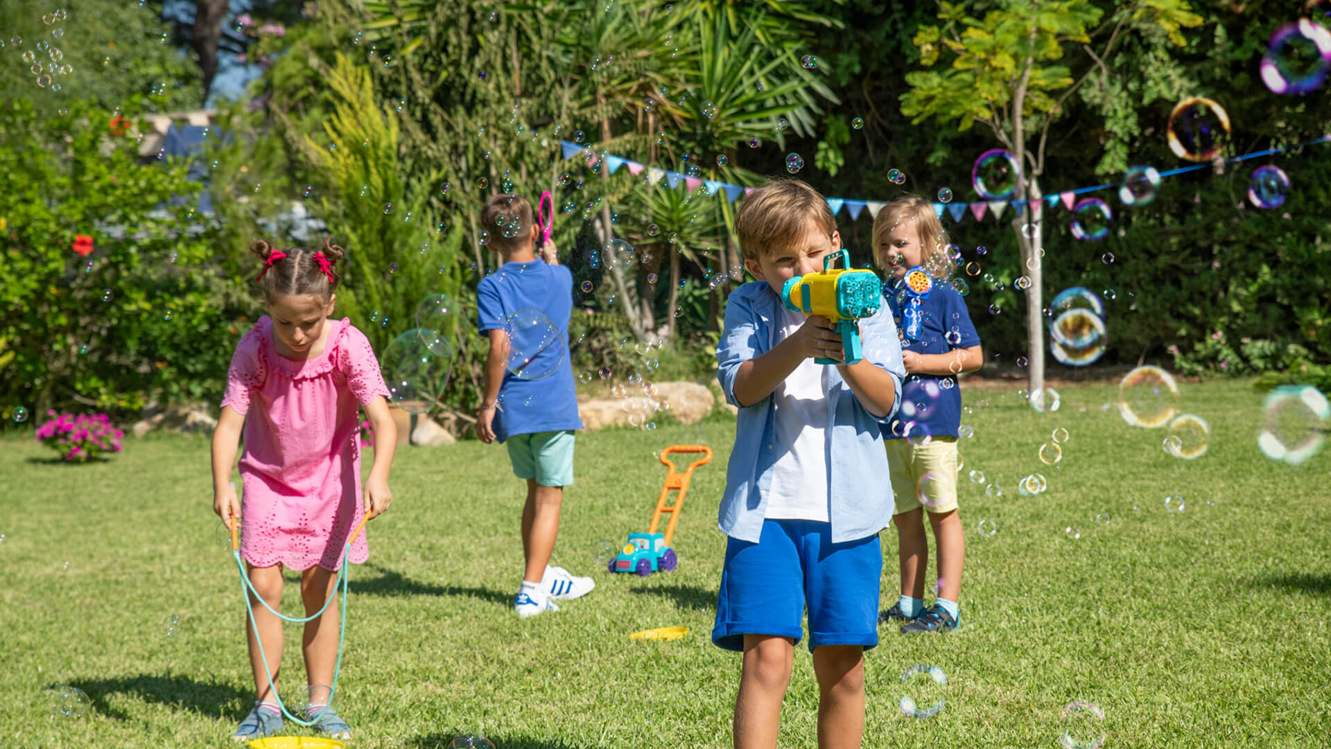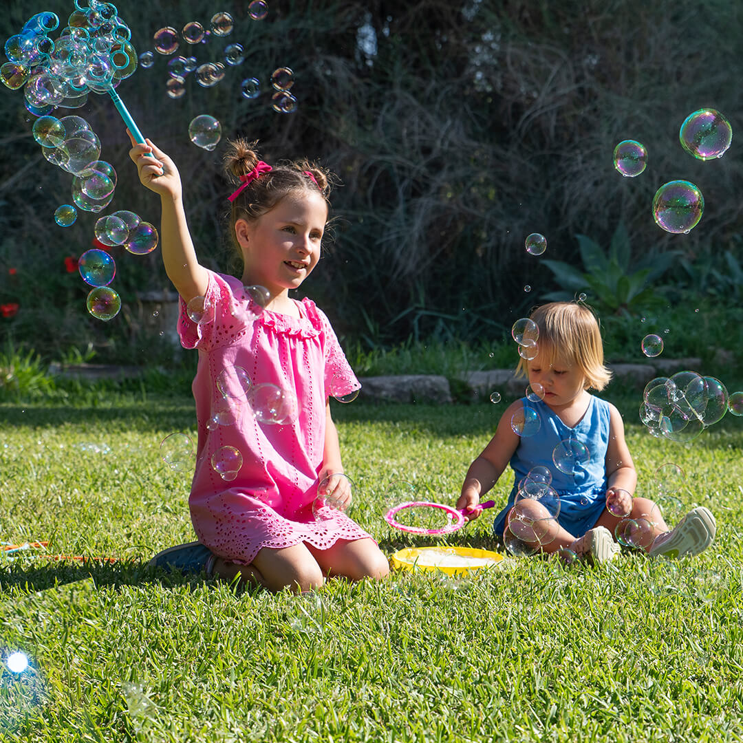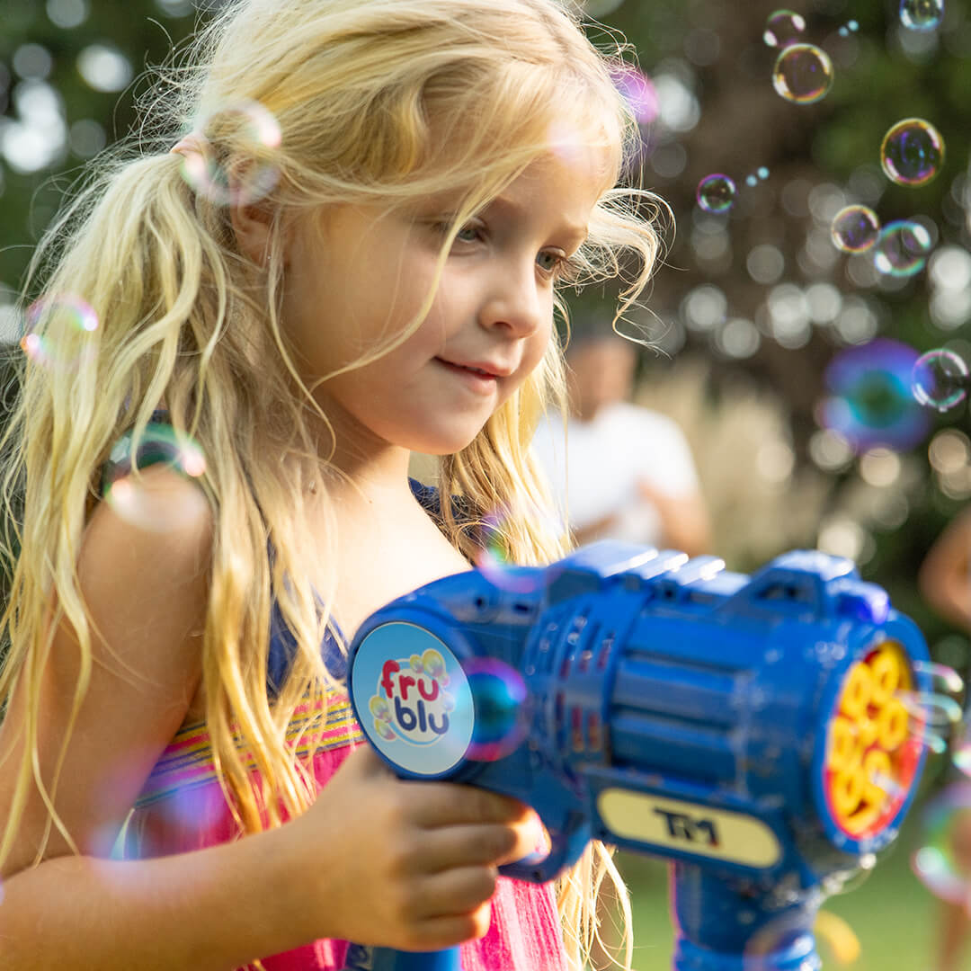 Fru Blu este lumea baloanelor de săpun care fascinează prin culorile și dimensiunile lor. Lichidul inovator și accesoriile sigure garantează distracție pentru copii și adulți. De la cele mai mici la cele uriașe, bulele Fru Blu aduc bucurie și magie în orice joacă în aer liber.