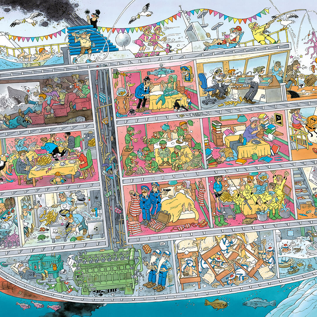 Jan van Haasteren sunt puzzle-uri iconice care amuză și surprind la fiecare pas. Ilustrațiile pline de umor, detalii și personaje hazlii creează scene colorate în care există mereu ceva de descoperit. Fiecare imagine este o aventură care distrează, dezvoltă atenția și garantează multă voie bună la asamblare.