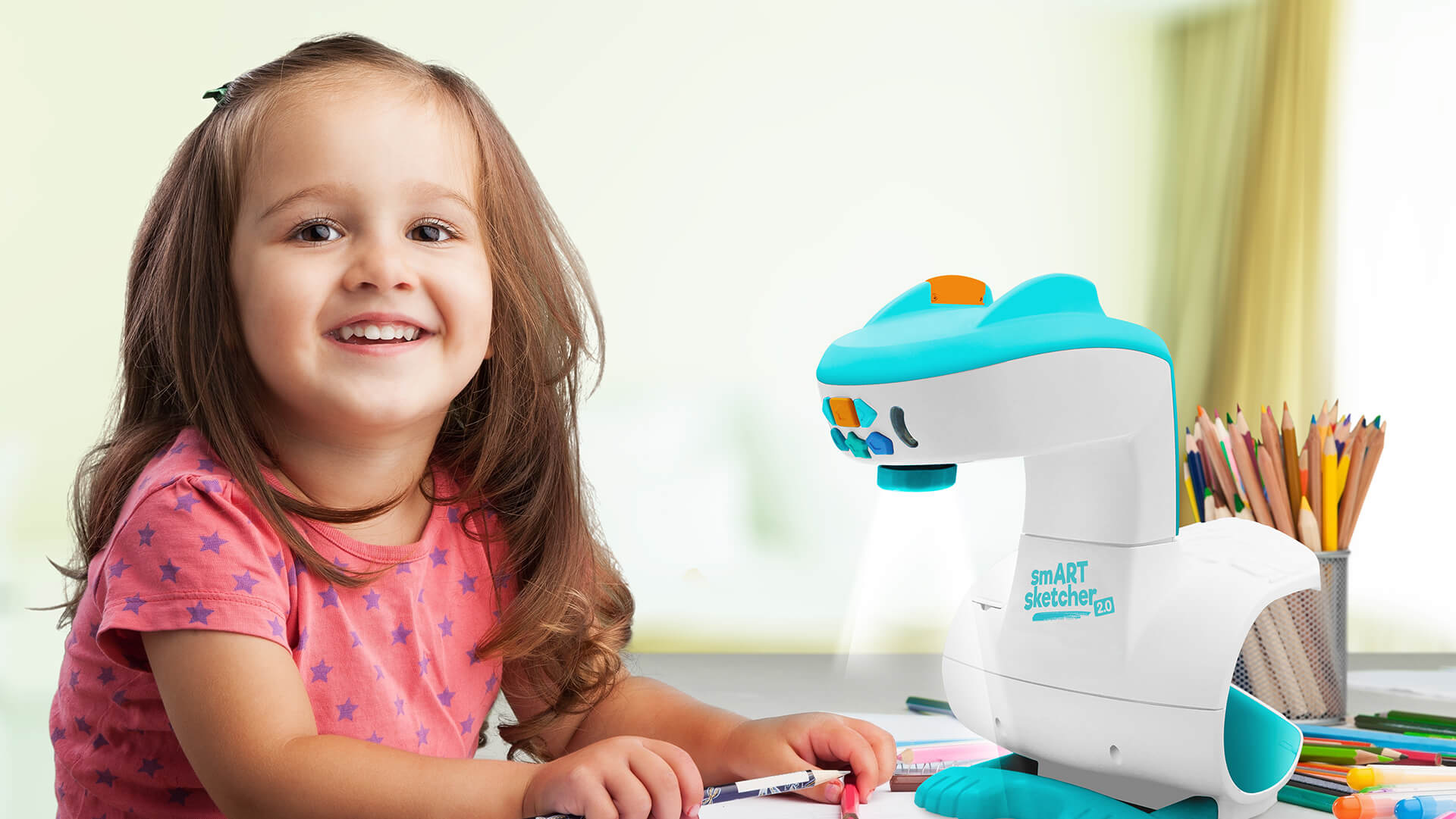 Smart Sketcher este un proiector inovator pentru desen, care transformă fotografiile în schițe simple. Cu aplicația și funcțiile creative, dezvoltă talentul artistic al copiilor. Învățarea desenului devine o aventură fascinantă ce sprijină abilitățile manuale și stimulează imaginația.